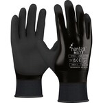 The Hantex N377 is a dual nitrile coated general handling glove that is perfect for especially wet or oily applications. The full flat nitrile non-porous coating provides a impervious barrier against water and oils to protect the hands whilst working. A secondary sandy foam nitrile coating provides the glove with exceptional grip by using micro-capilleries to divert liquids away from the surface of the glove and creating surface tension between the hand and the item. The glove has been colour coded in order for quick recognition by safety officers of a risk-zone, reducing the risk of cuts in the workplace. An excellent glove for manufacturing, waste removal, oil & gas or any especially wet, oily or greasy environments.